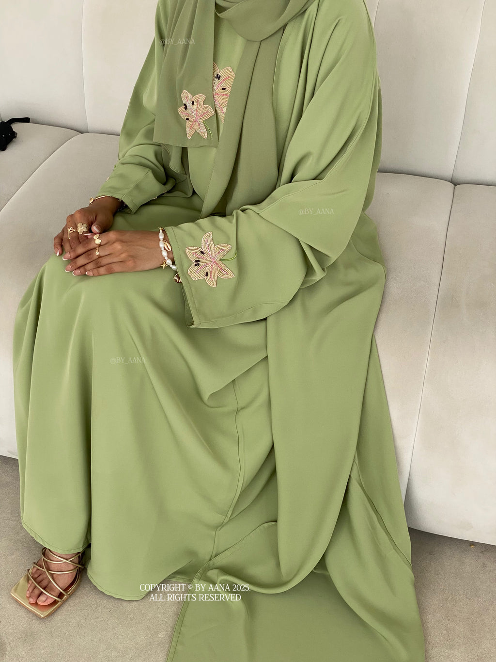 A/C Rosette Abaya with Maxi Hijab- Pistachio