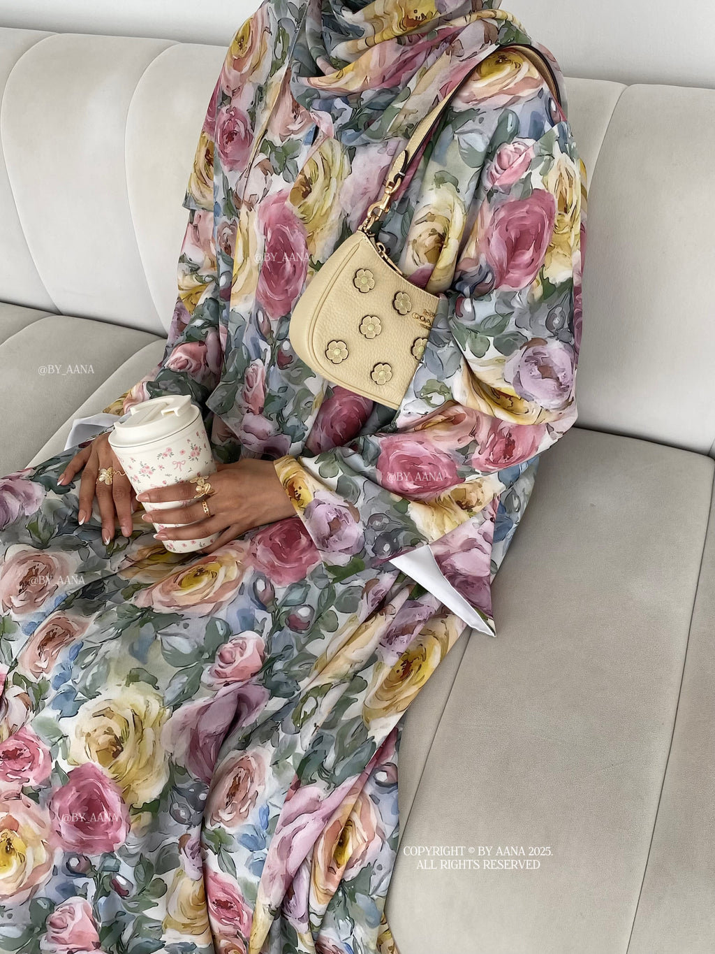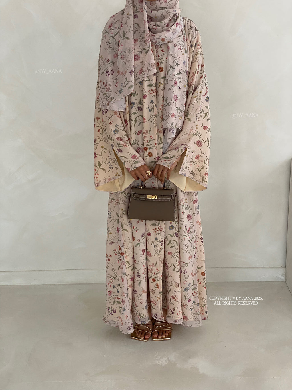 A/C Rosette Abaya with Maxi Hijab- Greige