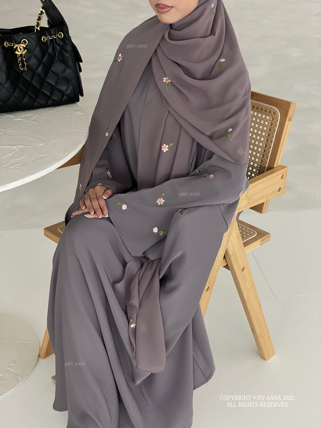 A/C Flower & Tulip Closed Abaya with Maxi Hijab- Storm Grey