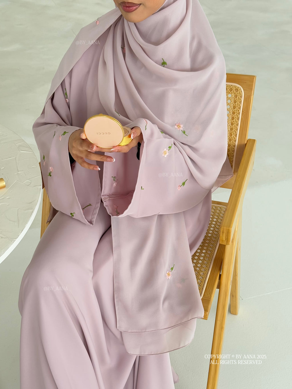 A/C Flower & Tulip Closed Abaya with Maxi Hijab- Mauve Pink