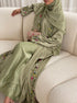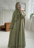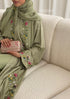This design is offered as a complete set, including a coordinating slip dress and a fully embroidered matching hijab to ensure a seamless, elevated finish.