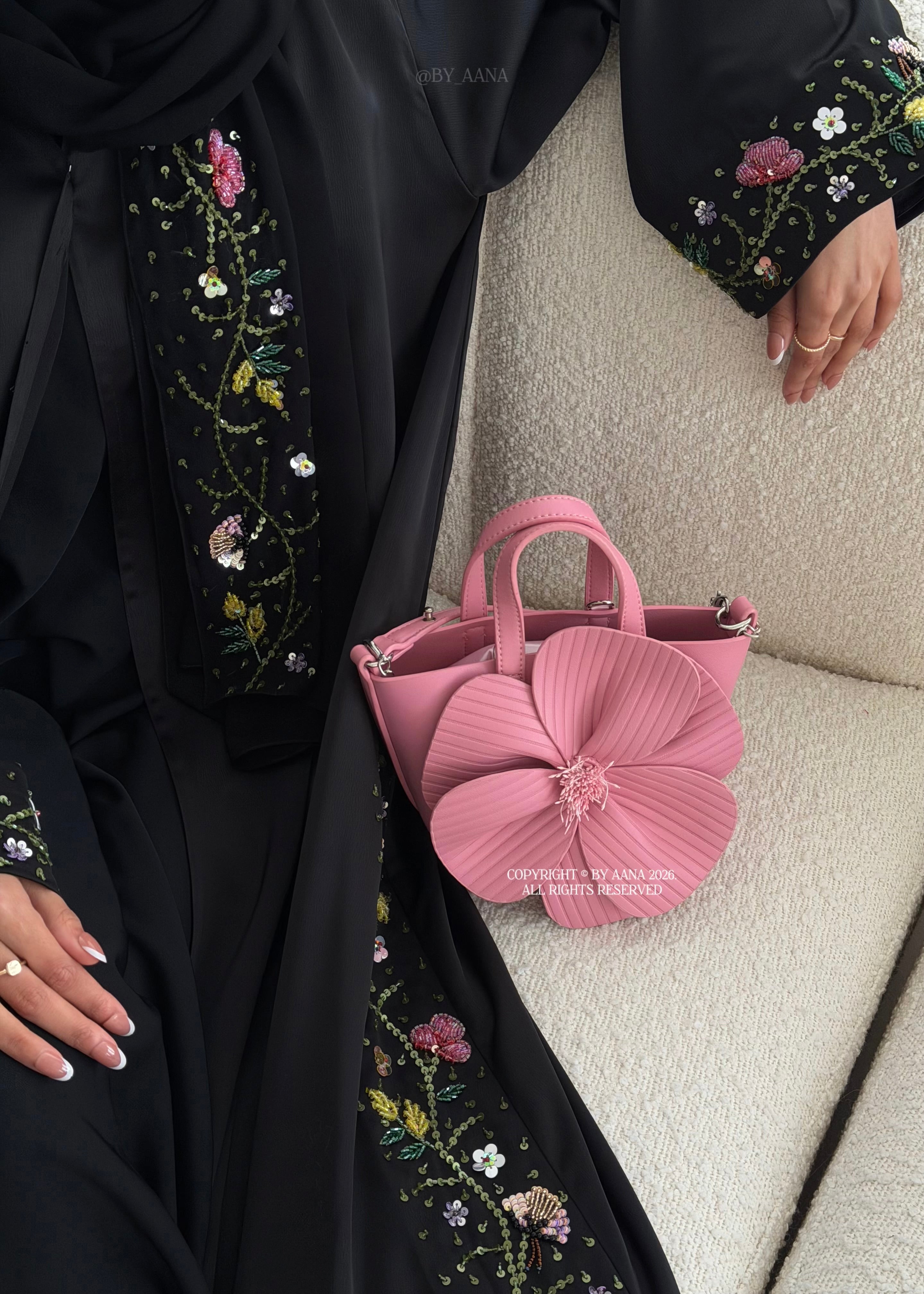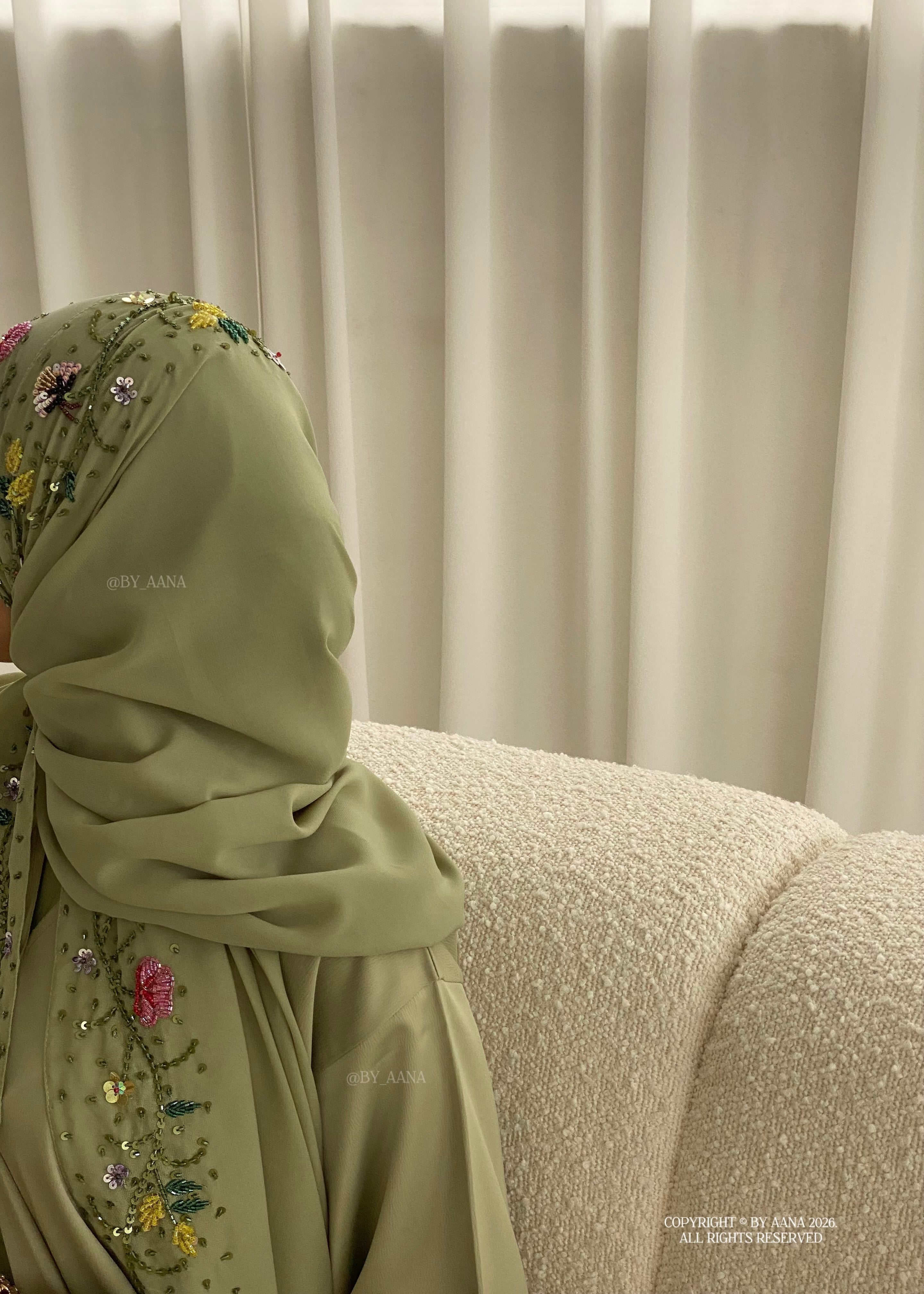 Please note: This design is entirely handcrafted using fifteen different bead types. As a result, slight variations may occur with the beads and colour. These differences are a natural characteristic of hand-finished craftsmanship and make each abaya unique.