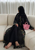 Elara Abaya- 3 Piece Set (Slip dress included) in Black