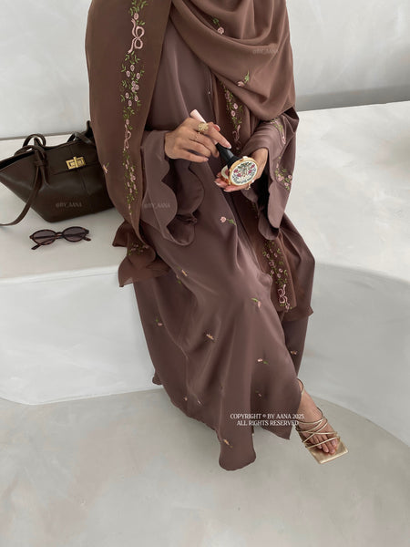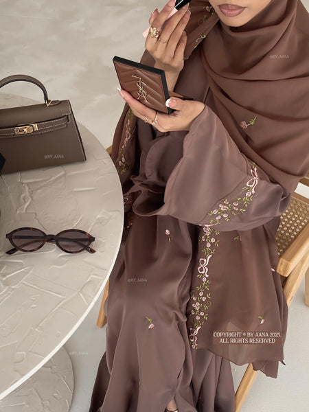 Is it even a By Aana abaya if we don’t make the hijab just as special? To complete the look, we’ve paired it with a maxi hijab featuring cascading bows, rosebuds, and, of course, flowers and tulips—ensuring every enchanting detail stands out!