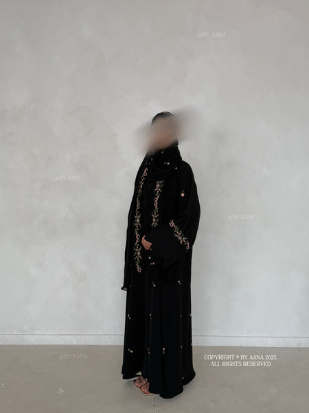 Is it even a By Aana abaya if we don’t make the hijab just as special? To complete the look, we’ve paired it with a maxi hijab featuring cascading bows, rosebuds, and, of course, flowers and tulips—ensuring every enchanting detail stands out!
